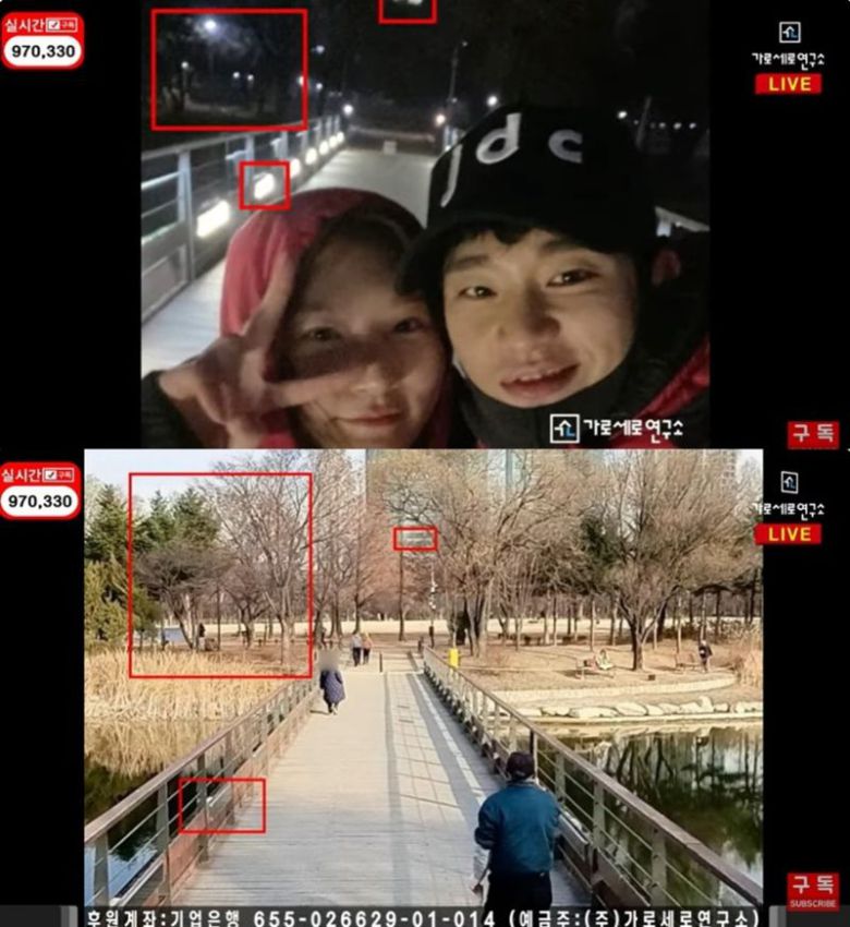 가세연측은 인근 가로수와 다리 위에 설치된 조명, 건물 등으로 추정한 결과라고 덧붙였다.