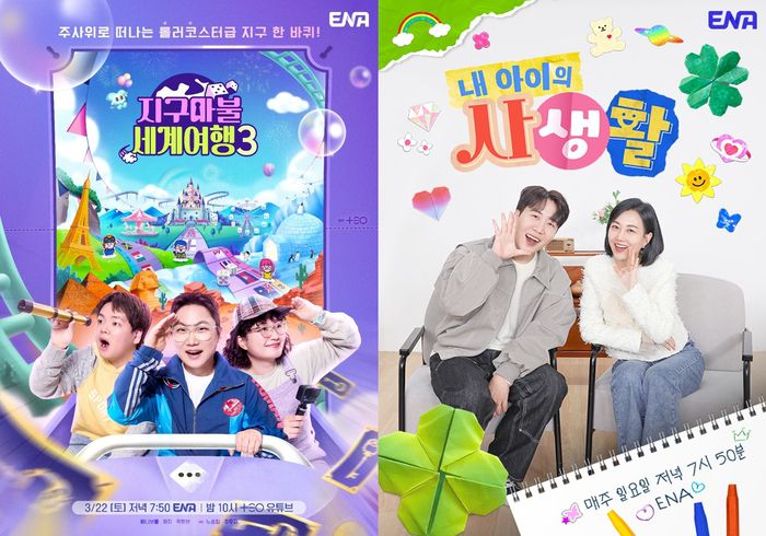 ‘지구마불 세계여행3’은 오는 22일 ㅇ후 7시 50분, ‘내 아이의 사생활’은 이튿날인 23일 오후 7시 50분 ENA에서 첫 방송된다.
