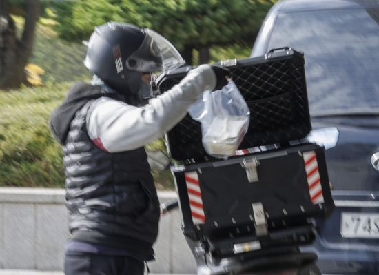 한 배달라이더가 음식 배달을 하고 있다. 연합뉴스