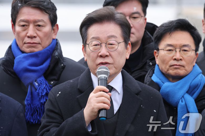 이 대표는 헌법재판소를 향해서도 윤석열 대통령 탄핵 심판 선고를 촉구했다. 그는 "어려운 점들이 많이 있겠지만 헌법재판소가 지금의 혼란을 최대한 신속하게 종결지어야 한다"며 "더 이상 국민들이 민주공화국의 가치와 질서를 지키기 위해 길거리에서 굶고 죽어가는 일이 없어야 할 것"이라고 목소리를 높였다.