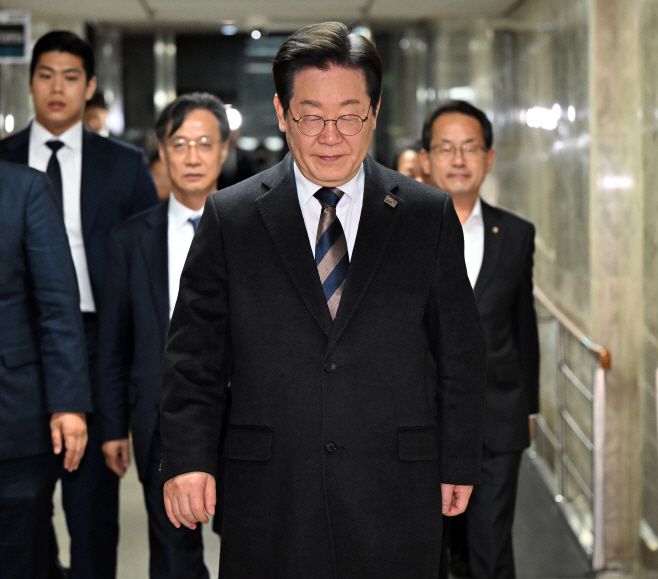 이재명 더불어민주당 대표가 지난 13일 국회에서 열린 비상의원총회에 참석하고 있다. /송의주 기자 |