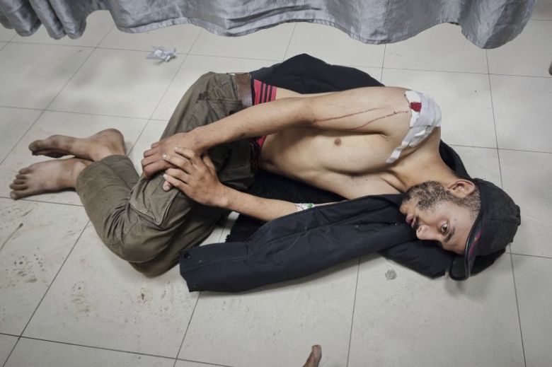 18일(현지 시간) 가자지구 남부 칸 유니스에서 이스라엘군 공습으로 부상 입은 남성이 치료를 기다리고 있다. 2025.03.18. /사진=뉴시스 |