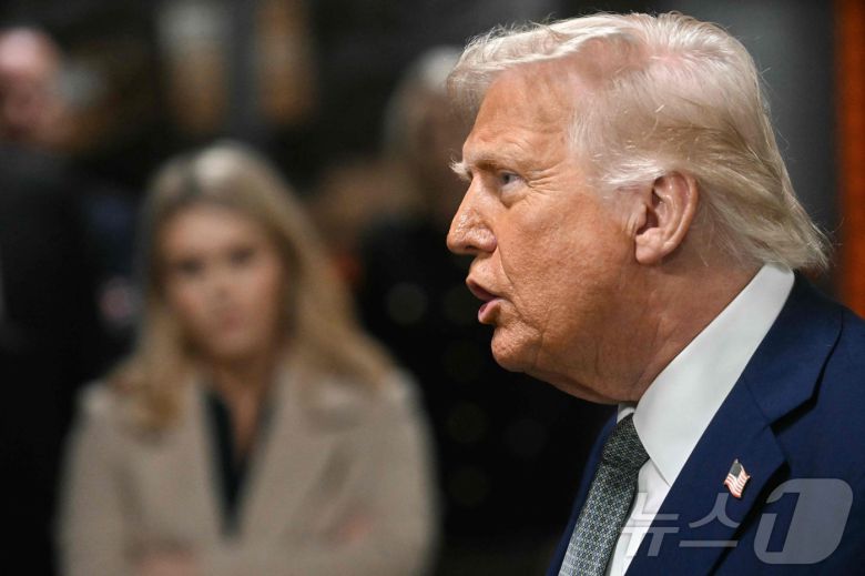 도널드 트럼프 미국 대통령이 17일(현지시간) 워싱턴의 대표적 공연장인 케네디 센터 이사회에 참석 중 취재진을 만나 “존 F. 케네디 전 대통령의 암살 사건과 관련한 미공개 파일을 삭제하지 않고 18일 모두 공개하겠다”고 밝히고 있다. 2025.03.18 ⓒ AFP=뉴스1 ⓒ News1 우동명 기자