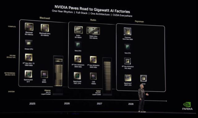 젠슨 황 CEO는 18일(현지시간) 미국 새너제이에서 열린 GTC 2025에서 차세대 로드맵을 공개했다. 그는 “토지와 전력을 계획해야 하고 생산능력을 따져야 하며 엔지니어링팀을 구성해야 하기에 2~3년 전에 계획을 세워야 한다”라며, “그렇기에 2~3년에 걸친 로드맵을 공개할 수 있는 것”이라고 소개했다.