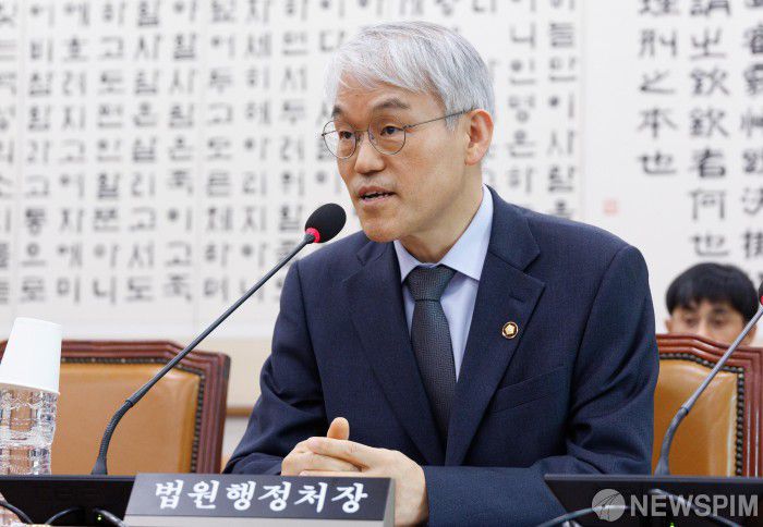 [서울=뉴스핌] 윤창빈 기자 = 천대엽 법원행정처장이 19일 오후 서울 여의도 국회에서 열린 법제사법위원회 전체회의에서 의원 질의에 답변하고 있다. 2025.03.19 pangbin@newspim.com |