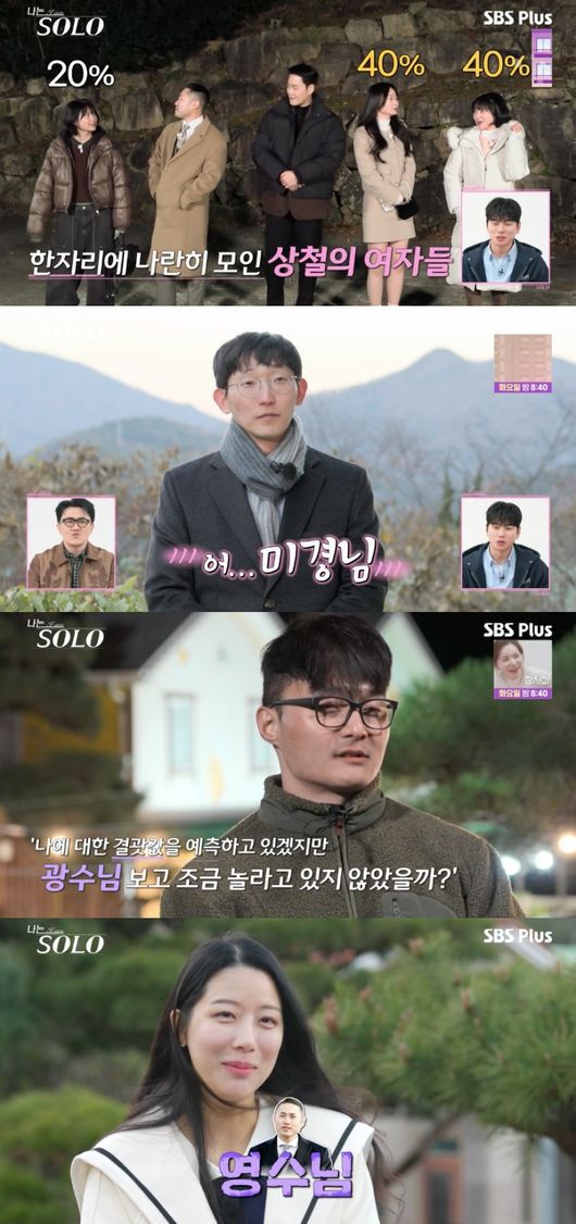 반면, 영식의 예상대로 가장 먼저 광수의 등장에 당황한 미경은 의외로 호감가는 상대로 영식이 아닌 영수와의 첫 데이트를 원했다고 밝혀 모두를 놀라게 했다. 그는 “사실 저는 대화를 못 해본 영수가 궁금하다. 장난만 쳤다”라고 말했다.