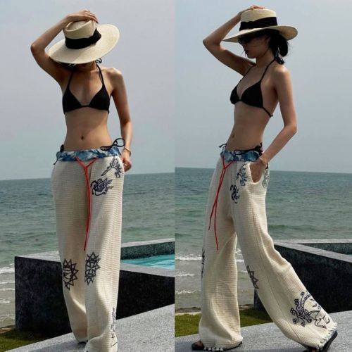 시크한 블랙 비키니 & 와이드 팬츠 조합