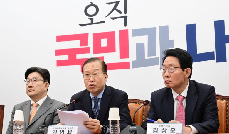 권 비대위원장은 “이 대표는 스스로 판사가 돼 최 권한대행을 향해 직무 유기 현행범으로 체포 가능하다는 ‘이재명 체포영장’을 발부했다”며 “스스로 경찰청장이 돼 국민 누구나 체포할 수 있다며 ‘개딸 동원령’까지 내렸다”고 강하게 비판했다.