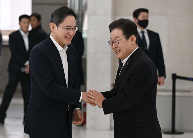 이에 이 대표는 “기업이 잘 돼야 나라가 잘되고, 삼성이 잘 살아야 삼성에 투자한 사람도 잘산다”며 “경제 성장에서 지금까지 해왔던 것처럼 견인차 역할을 잘 해주시길 당부드린다”고 답했다.