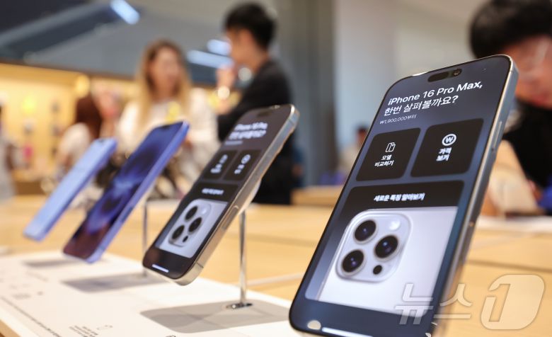 (서울=뉴스1) 김정현 기자 = 애플 스토어에서 아이폰을 구매하는 사람들에게 최대 24개월 무이자 할부 혜택이 제공된다.