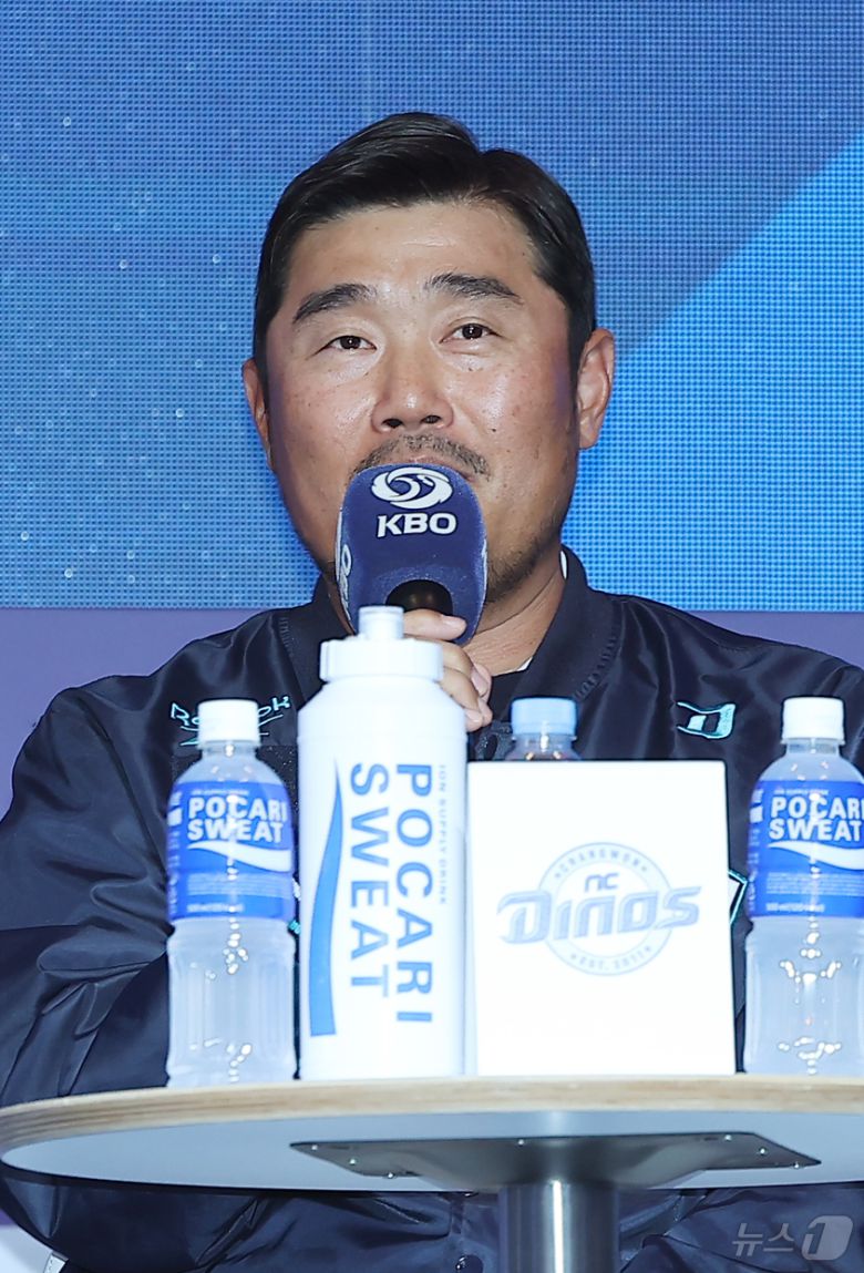NC 다이노스 이호준 감독이 20일 오후 서울 송파구 잠실 롯데호텔 월드에서 열린 신한 SOL Bank 2025 KBO 미디어데이에서 각오를 밝히고 있다. 2025 신한 SOL Bank KBO리그는 오는 3월 22일 5개 구장에서 일제히 팡파르를 울린다. 2025.3.20/뉴스1 ⓒ News1 김진환 기자 |