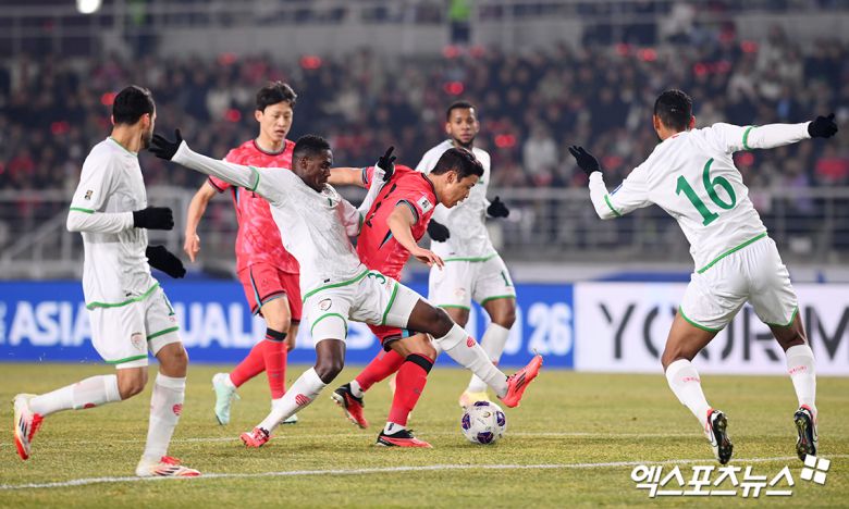 오만의 밀집 수비가 이어지면서 대표팀 공격도 답답했다. 주민규를 향한 크로스는 번번히 골키퍼와 수비에게 걸렸다. 측면에서의 공격과 압박 작업도 더디면서 힘을 쓰지 못했다.