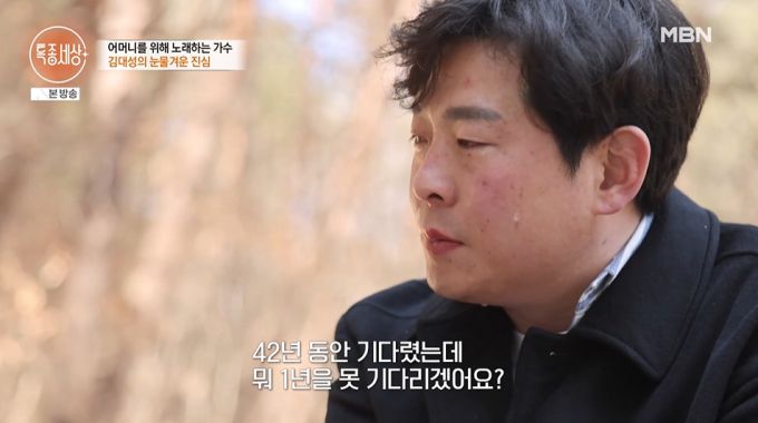 가수 김대성이 40년 만에 어머니와 연락이 닿았으나 어머니에게 다른 가정이 생긴 탓에 만나지 못했고, 3~4년 만 더 기다려보겠다고 다짐했다. /사진=MBN '특종세상' 방송 화면 |