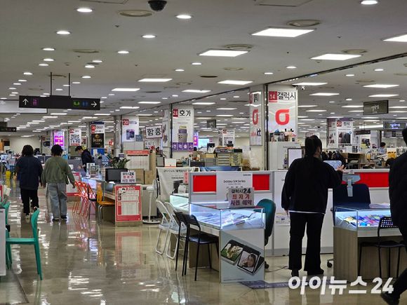 1일 오후 신도림 테크노마트 휴대폰 집단상가 전경. [사진=안세준 기자]