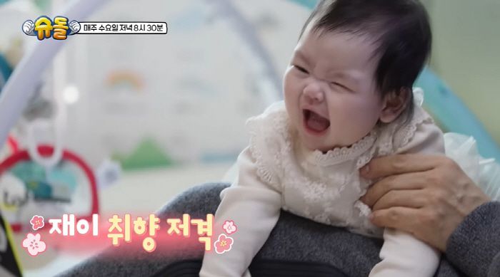 그 시각 잠에서 깬 재이는 엄마 품에 안겨 카메라에 인사를 건넸다. 그때 박수홍은 "공주님이다. 요즘에 정말 미모가(예뻐졌다)"며 눈을 떼지 못했다.