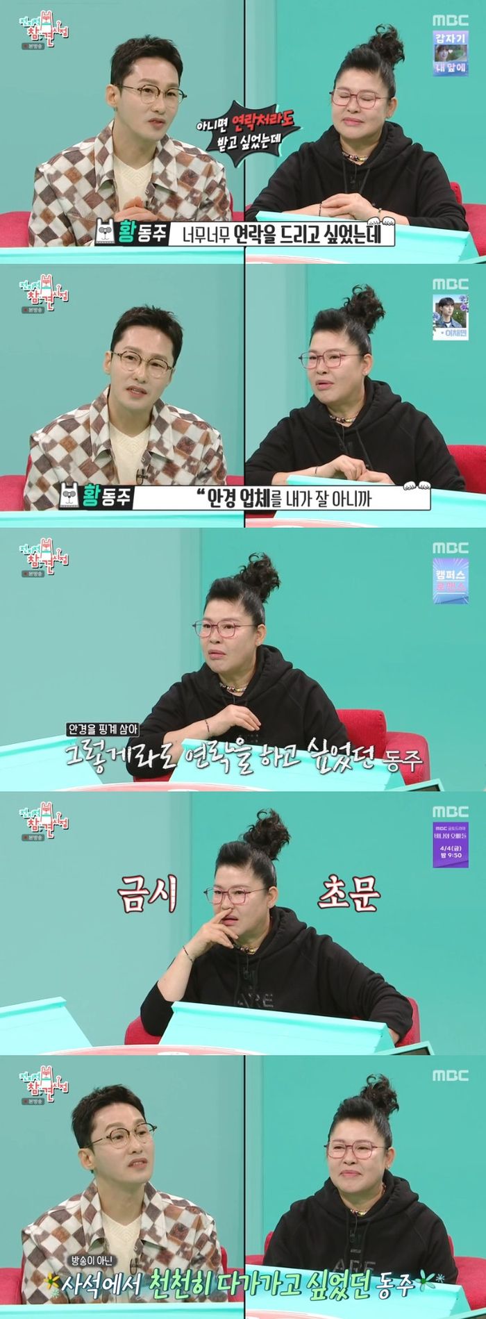이에 홍현희가 “여기서 확실하게 밝혀주세요. 팬심인지 이성에 대한 호감인지”라고 묻자 황동주는 “‘안녕하세요’ 때는 너무 연락을 드리고 싶었는데 그럴 용기가 없었어요. 그래서 제가 매니저한테 유미 누나 매니저한테 안경 업체를 내가 잘 아니까 연결을 해드린다는 말을 계속 했어요. 그렇게 시도는 해봤는데 안 됐어요”라고 했다.