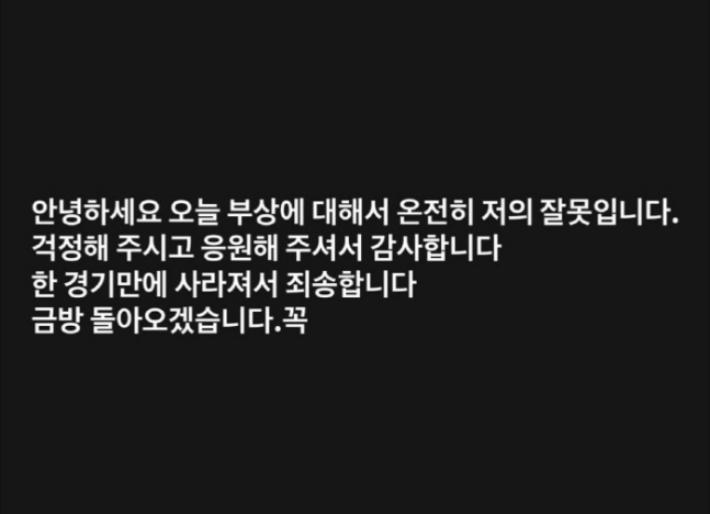 이날 오후 김도영은 자신의 SNS에 "오늘 부상에 대해서 온전히 저의 잘못입니다"고 자책하면서 "걱정해주시고 응원해주셔서 감사합니다. 한 경기만에 사라져서 죄송합니다"고 팬들에게 사과했다. 그러면서도 "금방 돌아오겠습니다. 꼭"이라고 글을 맺으며 복귀에 대한 강한 의지를 드러냈다.