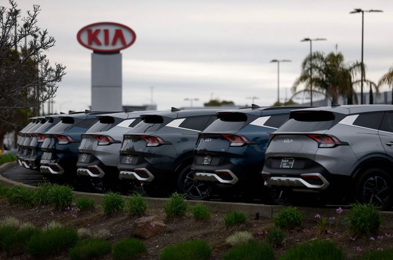기아가 만든 차량이 이달 초 미국 캘리포니아주 리치몬드의 한 판매장에 전시돼 있다./연합뉴스