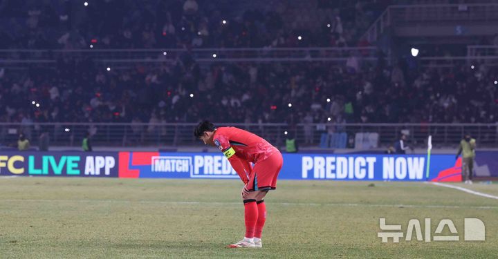 [고양=뉴시스] 추상철 기자 = 지난 20일 오후 경기 고양시 고양종합운동장에서 열린 '2026 국제축구연맹(FIFA) 북중미 월드컵 아시아 지역 3차 예선 B조 7차전' 대한민국과 오만의 경기, 1대1 무승부로 경기를 마친 손흥민이 아쉬워하고 있다. 2025.03.20. scchoo@newsis.com