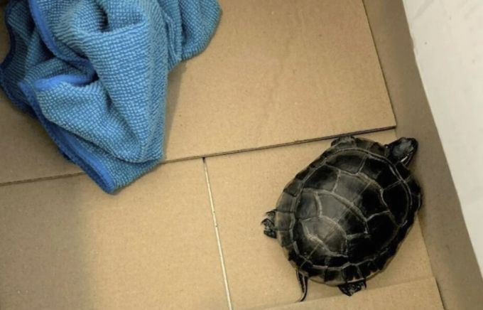 추궁을 받자 남성은 바지 속에 손을 넣어 거북이를 꺼냈다. 길이가 약 12cm에, 작은 파란색 수건에 싸여 있었다. 남성은 "반려동물로 인기 있는 종인 붉은귀거북"이라고 했다.