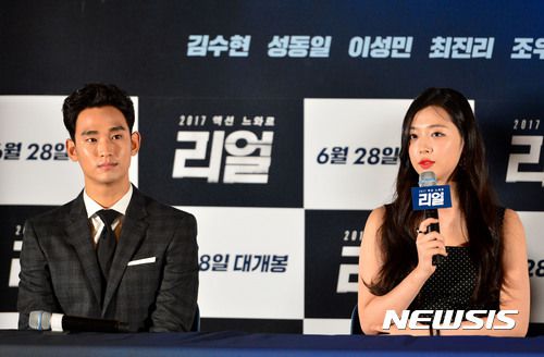 【서울=뉴시스】박진희 기자 = 26일 오후 서울 성동구 CGV왕십리에서 열린 ‘리얼’의 언론시사회에 참석한 가수이자 배우인 최진리(설리, 오른쪽))와 김수현이 기자간담회를 하고 있다. 2017.06.26. pak7130@newsis.com |