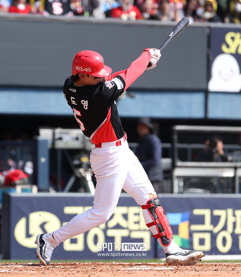 김도영은 22일 광주-기아챔피언스필드에서 열린 NC와 시즌 개막전에 선발 2번 3루수로 출전했다. 지난해 절정의 활약을 함과 동시에 국내 선수로는 첫 40홈런-40도루 도전에 나서는 등 리그 전체적으로 큰 화제를 모은 김도영은 올 시즌을 앞두고 지난해보다 몸이 더 가벼워졌다는 평가를 받는 등 기대를 한몸에 받았다. 이제는 메이저리그에서도 주목하는 귀한 몸이었다. 김도영도 정상적인 시즌 준비를 자신했다. 실제 시범경기 5경기에서도 타율 0.467(15타수 7안타)의 빼어난 타격감에 총알타구로 2루타도 만들어내는 등 좋은 컨디션을 과시했다. 그래서 더 기대가 큰 개막전이었다.