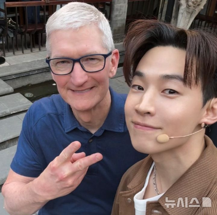 [서울=뉴시스]애플 CEO 팀 쿡, 가수 헨리와 사진 촬영 (사진 = 헨리 SNS 캡처) |