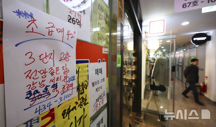 [서울=뉴시스] 김근수 기자 = 19일 서울 송파구의 한 부동산 앞에 아파트 시세 안내문이 붙어 있다. 2025.03.19. ks@newsis.com