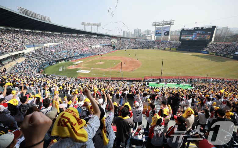 (서울=뉴스1) 서장원 기자 = 2025시즌 프로야구가 화려하게 막을 올렸다. 지난 시즌 사상 최초 1000만 관중을 동원한 프로야구는 올해 개막전부터 구름관중을 끌어들이며 그 인기를 실감케 했다. 이틀간 열린 10경기 모두 매진이라는 새로운 기록이 쓰였다.