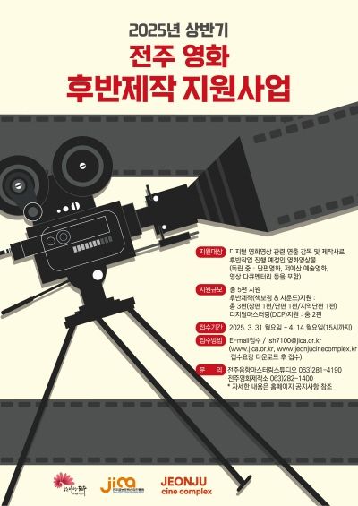 전주시 관계자는 “2025년 상반기 공모에 많은 독립영화 창작자가 참여해 전주의 후반제작 인프라를 적극 활용하길 기대한다”고 말했다.
