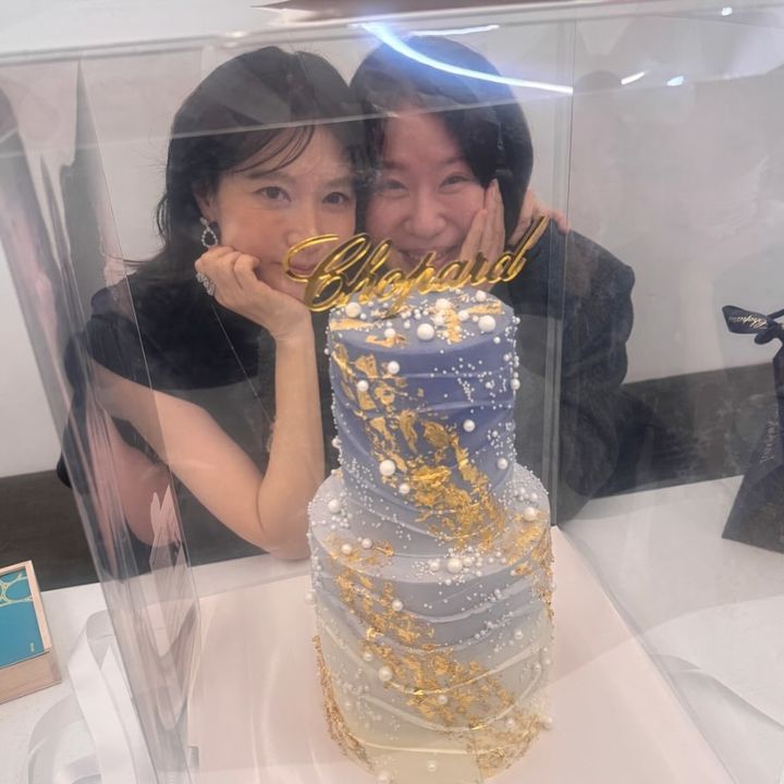 이영애와 이 편집장은 거대하고 화려한 케이크를 배경으로 인증샷을 남겼다.