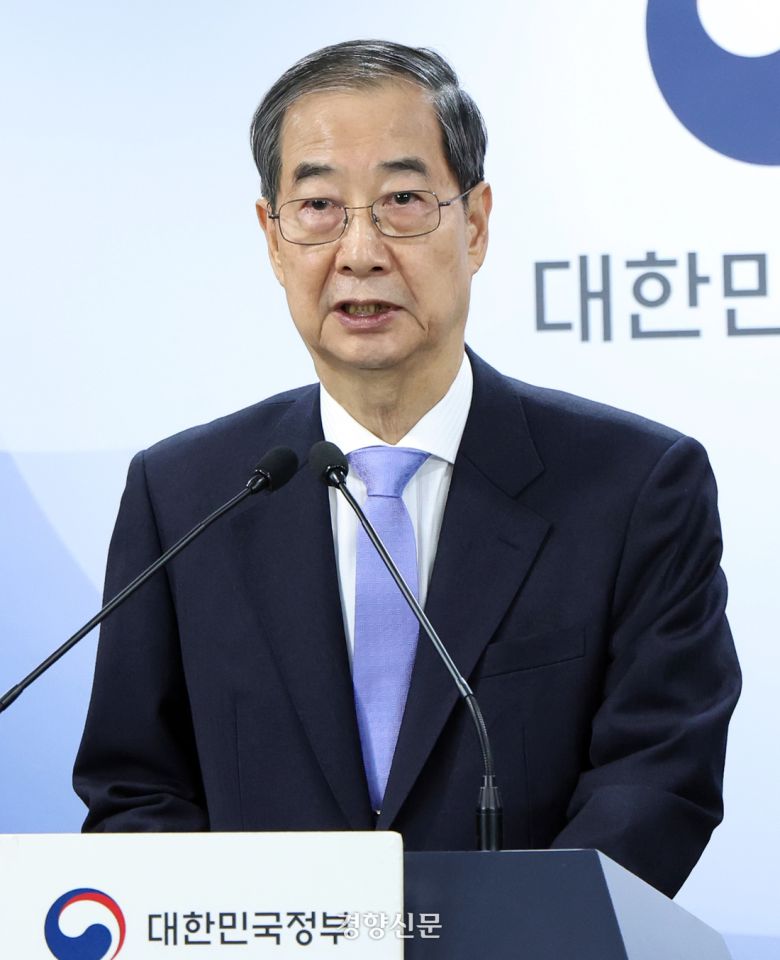 한덕수 대통령 권한대행이 24일 정부서울청사에서 대국민담화를 발표하고 있다. 김창길 기자 |