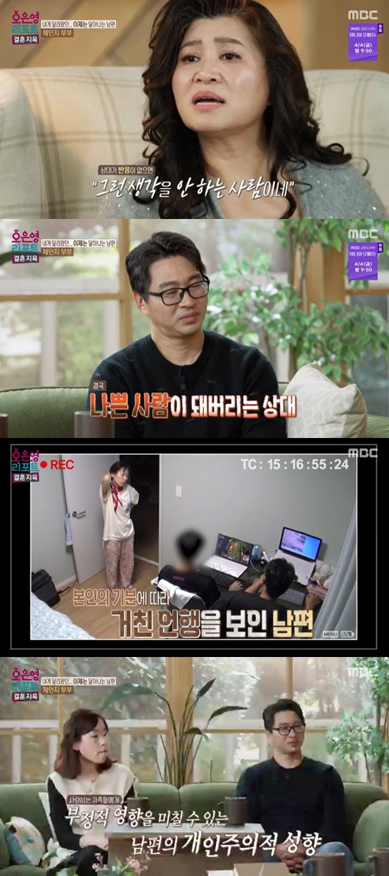 24일 방송된 MBC '오은영 리포트=결혼지옥'(이하 '결혼지옥')에서는 아내의 말이면 모든 게 귀찮은 남편과 그런 남편에게 사랑받고 싶은 아내, '체인지 부부'가 등장했다.