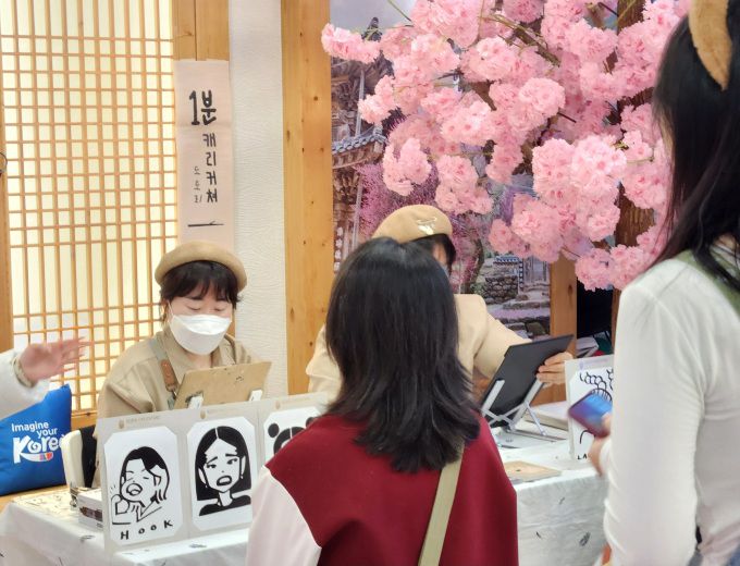 광저우 K-관광 로드쇼와 연계해 운영되는 봄꽃 여행테마 홍보관에서 관람객들이 체험프로그램에 참여하고 있다. [사진=한국관광공사] |
