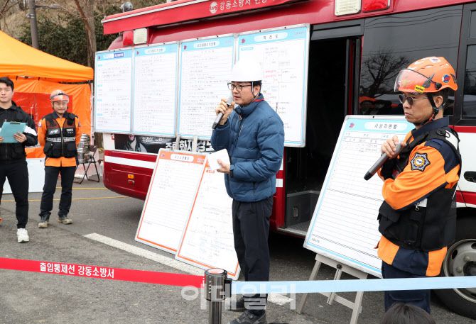 [이데일리 김태형 기자] 이재혁 서울시 도시기반시설본부 도시철도토목부장과 소방대원들이 25일 서울 강동구 명일초등학교 입구 사거리 땅 꺼짐 사고 현장에서 기자들에게 브리핑을 하고 있다. 한편, 전날 발생한 땅 꺼짐(싱크홀) 사고 현장에서 실종된 오토바이 30대 운전자는 심정지 상태로 발견됐다. 이 기사의 카테고리는 언론사의 분류를 따릅니다.0공유하기