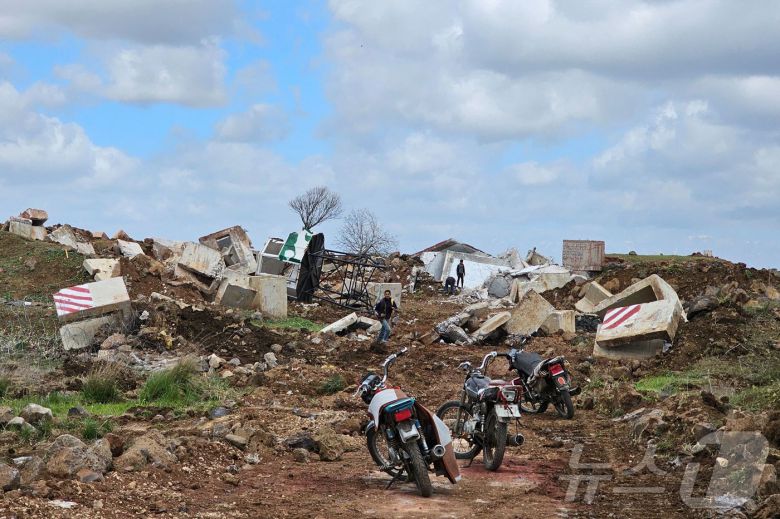 시리아 국경 도시 쿠네이트라 남부 외곽에 있는 한 초소에서 이스라엘군이 진입해 시리아군의 피해를 확인하고 있다. 2025.03.19. ⓒ AFP=뉴스1