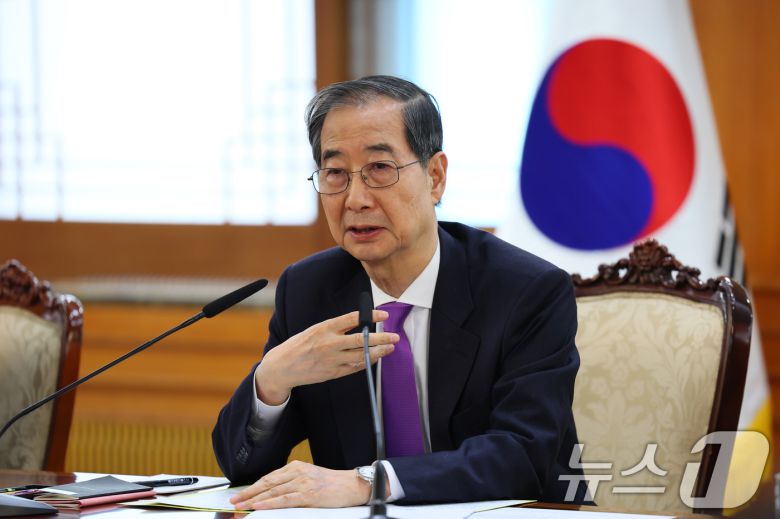 한덕수 대통령 권한대행 국무총리가 25일 서울 종로구 정부서울청사에서 열린 긴급 통상관계장관 간담회에서 발언을 하고 있다. (총리실 제공, 재판매 및 DB 금지) 2025.3.25/뉴스1 ⓒ News1 임세영 기자 |