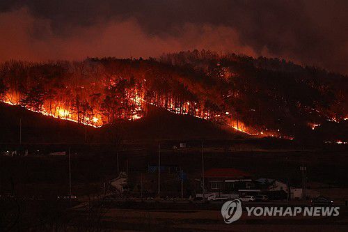 불타는 안동 남선면 야산(안동=연합뉴스) 김도훈 기자 = 25일 경북 안동시 남선면 마을 인근 야산이 불에 타고 있다. 2025.3.25 superdoo82@yna.co.kr ▶제보는 카카오톡 okjebo▶연합뉴스 앱 지금 바로 다운받기~▶네이버 연합뉴스 채널 구독하기<저작권자(c) 연합뉴스, 무단 전재-재배포, AI 학습 및 활용 금지>이 기사의 카테고리는 언론사의 분류를 따릅니다.0공유하기