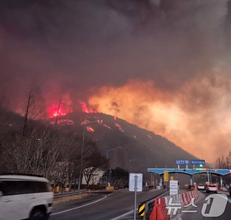 경북 의성군에서 발생한 산불이 25일 강한 바람을 타고 안동시 쪽으로 번지고 있다. (독자제공, 재판매 및 DB 금지) 2025.3.25/뉴스1 ⓒ News1 최창호 기자