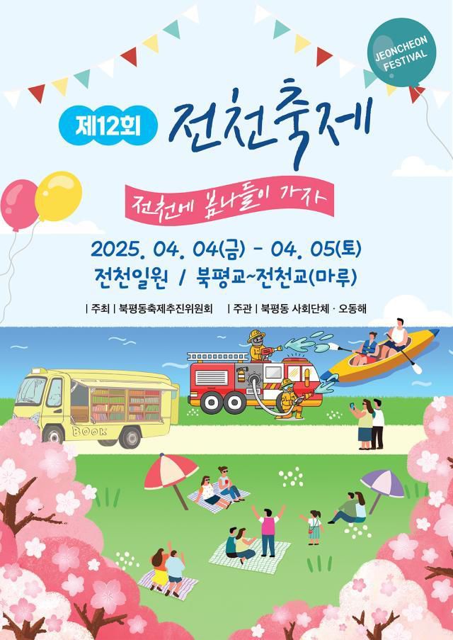 전미애 북평동장은 “올해로 12회를 맞이하는 전천축제는 지역민들이 함께 만들어 가는 정말 뜻깊은 행사이다. 봄기운 가득한 전천에서 가족, 연인, 친구들과 함께 따뜻한 추억을 만들어 가시길 바란다”고 전했다.