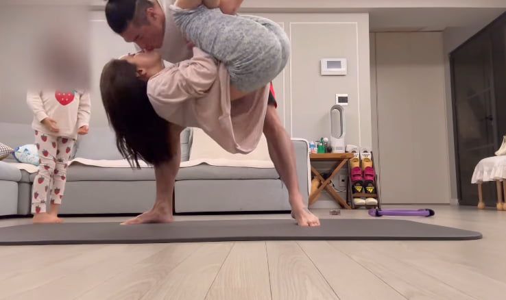 공개된 영상 속 한채아는 매트에 누워있고 남편 차세찌는 그런 아내를 들어올려 입을 맞췄다. 문신으로 가득한 차세찌의 모습도 눈길을 끈다. 두 사람은 키스 챌린지를 3회 성공했다.