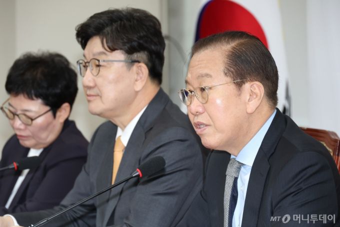 권 원내대표는 이 대표 공직선거법 2심에 대해 "이렇게 중요한 재판에 설명자료가 없다. 왜 설명자료가 없겠나. 본인들이 생각해도 납득시키기 어려운 논리의 판결문을 썼으니까 설명자료를 쓸 자신이 없는 것이 아니겠나"라고 주장했다.