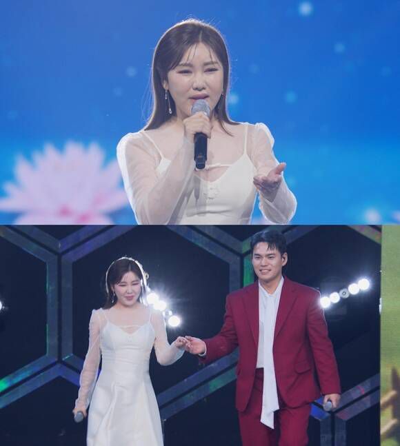 가수 송가인(위)과 천록담이 27일 오후 10시 방송되는 TV조선 예능프로그램 '미스터트롯3 갈라쇼' 2회에서 듀엣 무대를 꾸민다. /TV조선 |