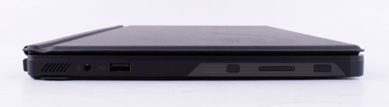 ASUS ROG Flow Z13 GZ302는 작은 크기에도 다양한 입출력 단자를 갖췄다. USB 4, DisplayPort 2.1, PD(Power Delivery) 3.0을 지원하는 듀얼 USB Type-C, USB Type-A, HDMI 2.1, 마이크로SD 카드 슬롯, 오디오 잭 등 다양한 모니터와 주변 기기를 원활하게 연결할 수 있다.