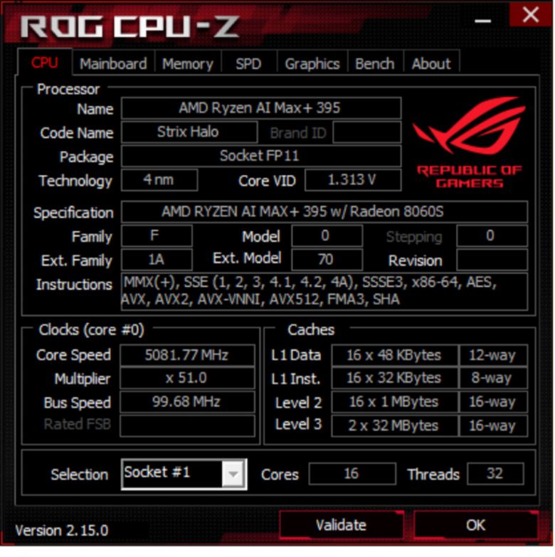 AMD 라이젠 AI MAX+ 395 프로세서가 탑재됐다. 16코어 32스레드이고 싱글 스레드 성능은 라이젠 9 7950X와 비슷하고 멀티 스레드 성능은 라이젠 9 5950X보다 높다.
