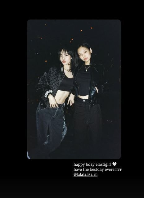 27일 제니는 자신의 SNS에 “생일 축하해, 엘라스티걸. 세상에서 가장 멋진 하루 보내길!”이라며 축하 메시지를 전했다. 그리고 지수와 로제도 이어 리사의 생일을 축하하며 완전체의 의리를 입증했다.
