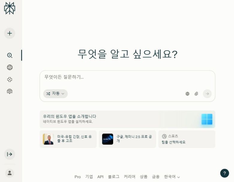 AI 기반 검색엔진이자 생성형 AI 모델로, 구글 검색처럼 질의응답이 가능하면서도 GPT 기반의 응답을 제공하는 하이브리드형 도구다. 모든 응답에 출처를 명시하는 '참조 기반 답변'이 특징이며, 최신 정보를 빠르고 정확하게 요약해 보여주는 데 강점을 지닌다. 단문 응답이나 빠른 리서치에 최적화되어 있어 정보조사 단계에서 유용하다.