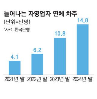 27일 한국은행에 따르면 자영업자 중 1개월 이상 원리금을 상환하지 못하고 있는 연체 차주는 2021년 말 4만1000명에서 2024년 말 14만8000명으로 3년 새 3.6배 급증했다.