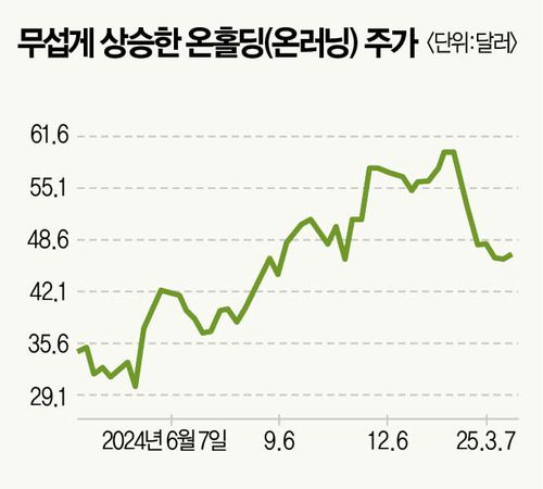 미국 증시 하락세가 심상찮다. 그간 랠리를 이끌던 기술주뿐 아니라 글로벌 경기 침체 우려로 소비재 역시 큰 폭의 조정을 받고 있다. 트럼프발 관세 정책 불확실성의 여파다. 하지만 소비재 중에서도 관심을 끄는 종목은 있다. 글로벌 투자은행(IB)이 연이어 목표주가를 상향 조정한 온홀딩(ONON)이 대표적이다. 러닝화 브랜드 ‘온러닝’을 전개하는 업체다. 3월 19일 기준 주가는 47달러로 1년 전과 비교하면 40% 상승했다. 글로벌 IB는 추가 상승을 내다본다. 바클레이즈는 최근 온홀딩 목표주가를 64달러로 제시했고 HSBC도 기존 52달러에서 58달러까지 눈높이를 높였다. 당초 65달러를 제시했던 UBS는 73달러로 목표주가를 상향했다.
