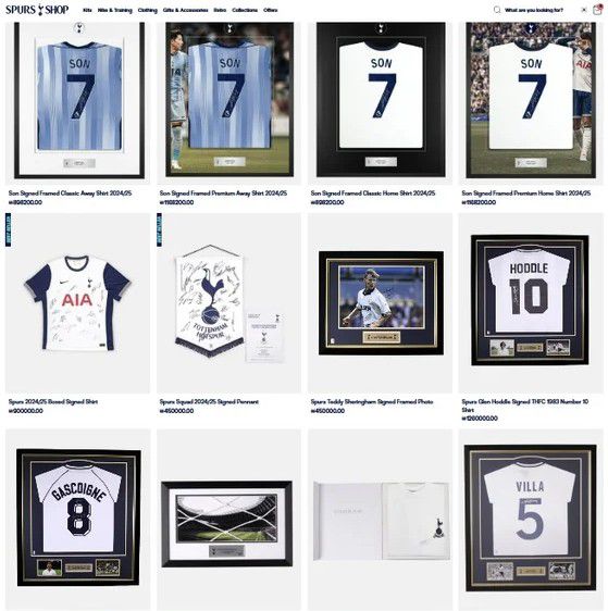 토트넘은 구단 유니폼, 기념품을 판매하는 공식 상점 '스퍼스 샵'에선 손흥민의 2024-2025시즌 토트넘 홈, 원정 유니폼에 그가 직접 친필 사인한 액자를 판매 중이다. 손흥민의 친필 사인 유니폼 액자는 총 4개로 홈, 원정 각각 2개씩 클래식, 프리미엄으로 나뉘어 있다.